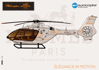 Fruit d'une collaboration entre Eurocoptère et Hermès, l'EC 135 "Hermès" n'est pas un simple aménagement mais une véritable transformation afin de satisfaire une clientèle exigeante ainsi, le patin de série a été remplacé par un modèle de section beaucoup plus large pour faciliter l’accès à bord. La cabine, recouverte de la célèbre toile beige utlisée depuis près d’un siècle par Hermès, a été divisée en trois volumes indépendants. Une cloison partiellement vitrée sépare le poste de pilotage de la cabine passagers. La soute est indépendante. L’accès se fait, à l’extérieur, par l’arrière de la machine. Elle s’ouvre par deux portes et un rayon a été installé pour faciliter le rangement des bagages. Toutes ces transformations ont fait l'objet de plus de soixante demandes de validation auprès des autorités de certifications, preuve d'une refonte complète de l'appareil. Ce modèle alliant haute technologie et haute couture française propose une nouvelle approche du transport aérien dédié au business.